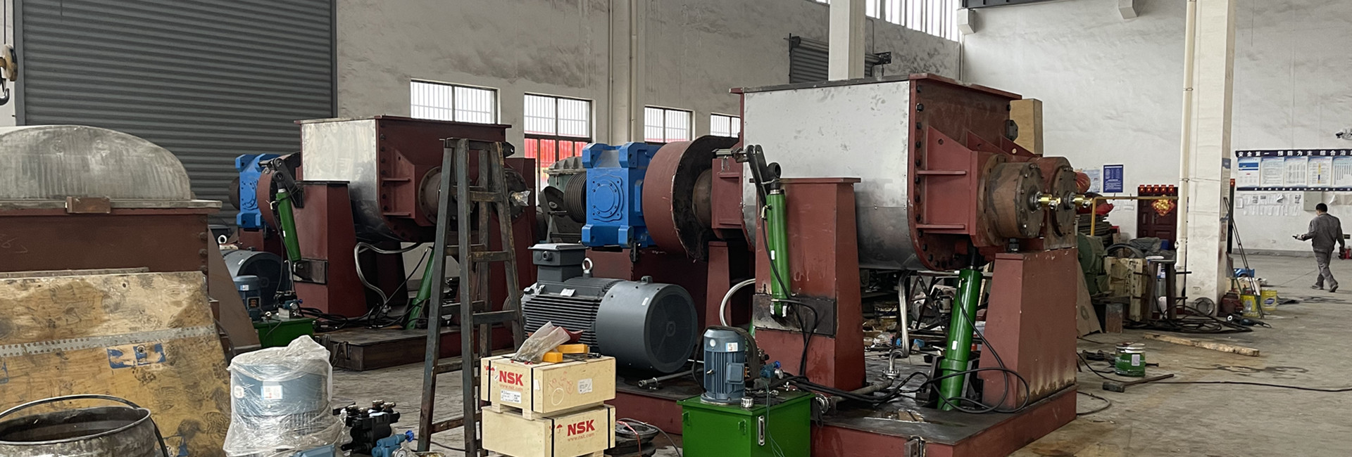 工廠擁有各類(lèi)型專(zhuān)用生產(chǎn)設(shè)備30多臺(tái)套,具備車(chē)、刨、鏜、銑、焊等各種加工能力。大型機(jī)加工設(shè)備如CW61160L車(chē)床、T×6113C3/IV數(shù)控鏜床等等,滿足各種型號(hào)的捏合機(jī)的生產(chǎn)和加工。